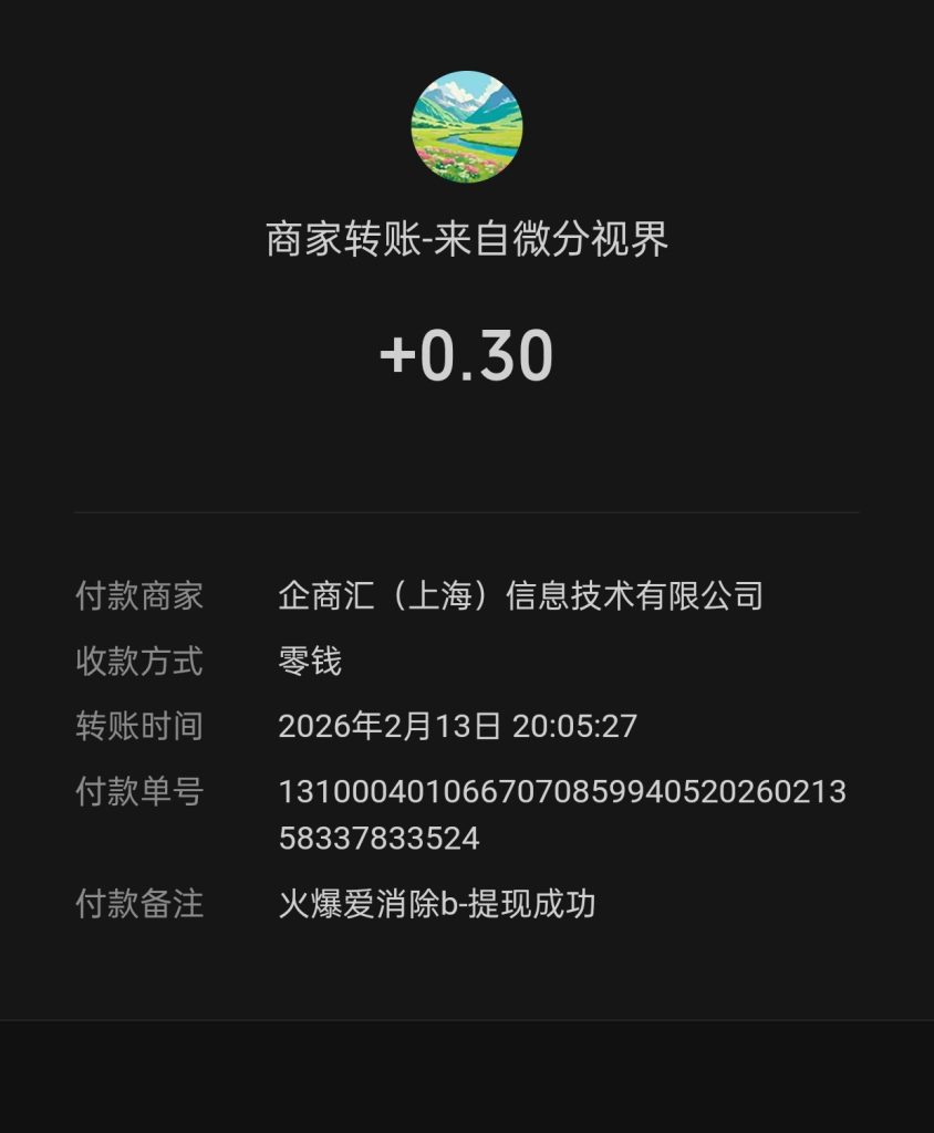 和前面一样,消消乐类游戏微信授权登录后签到,看一个广告提现0.3,提现秒到。